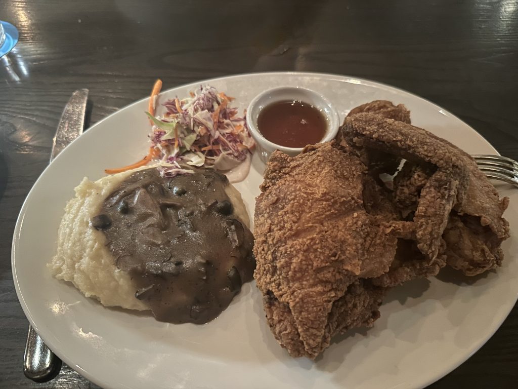 Ashley and I hit the road late in the afternoon and were eyeing dinner in Richmond. She found Fall Line Kitchen & Bar that had a terrific menu, so we decided to stop there. It was in the lobby of a hotel, and parking was a bit of an adventure, but the food was amazing. We had a burnt ends appetizer and some cornbread served in a cast iron skillet with some of the best compound honey butter either of us had ever eaten. I got the southern fried chicken, mashed potatoes, mushroom gravy, coleslaw, and hot honey, and Ashley got the braised short rib. It was a terrific atmosphere and the food was amazing. Again, you can tell how big of a role food plays in my life. Enjoying meals and making memories with Ashley is one of my favorite things.