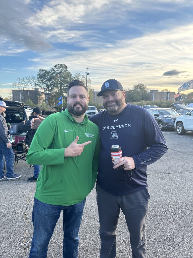 The Monarchists were hosting us at their tailgate a stone’s throw from the stadium across the street. Mike Langston, Aaron Zielinski, and Gary Williams were awesome hosts and had as much food and drinks as we wanted. Also there as host was Justice from The G5 Hive podcast. I had been on both of these shows multiple times and it was great to meet everyone in person and get to know them better. That is one of the very best things I have experienced as a podcast host is getting to know amazing people from other Sun Belt schools. They introduced us to ODU player parents and other fans, and then we all went into the game. Other than not being able to take in my stadium chairs and having to walk them back to the hotel and then backtrack to the stadium, the game was nice. Marshall came out with the victory in a close game, and there was a decent showing of Herd fans there as well.