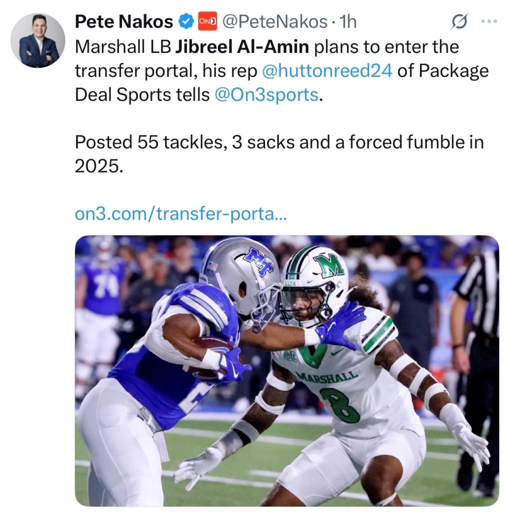 Al-Amin transferred to Marshall for the 2025 season and was fifth on the team in tackles with 56 (30 solo). He also had 3 sacks and 5.5 tackles for loss with a forced fumble. Al-Amin had previously announced that he would return to Marshall for another year. His 1/5/2026 Twitter announcement is via his agent as reported by Pete Nakos. Committed to Kansas on 1/9/2026.