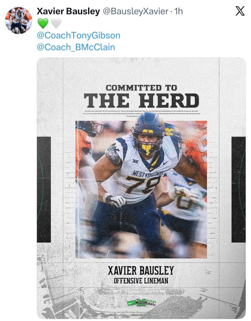 Bausley is a former South Charleston High School offensive lineman that originally committed to Youngstown State out of high school He transferred to Jacksonville State, where he remained for two years and was named to the CUSA All-Freshman Team He transferred to WVU for the 2024 and 2025 seasons. Bausley’s 1/5/2026 announcement on Twitter is below.