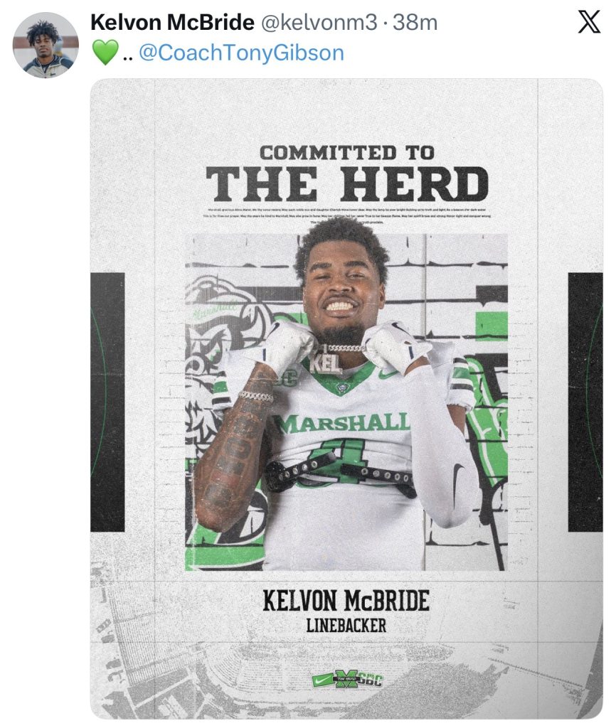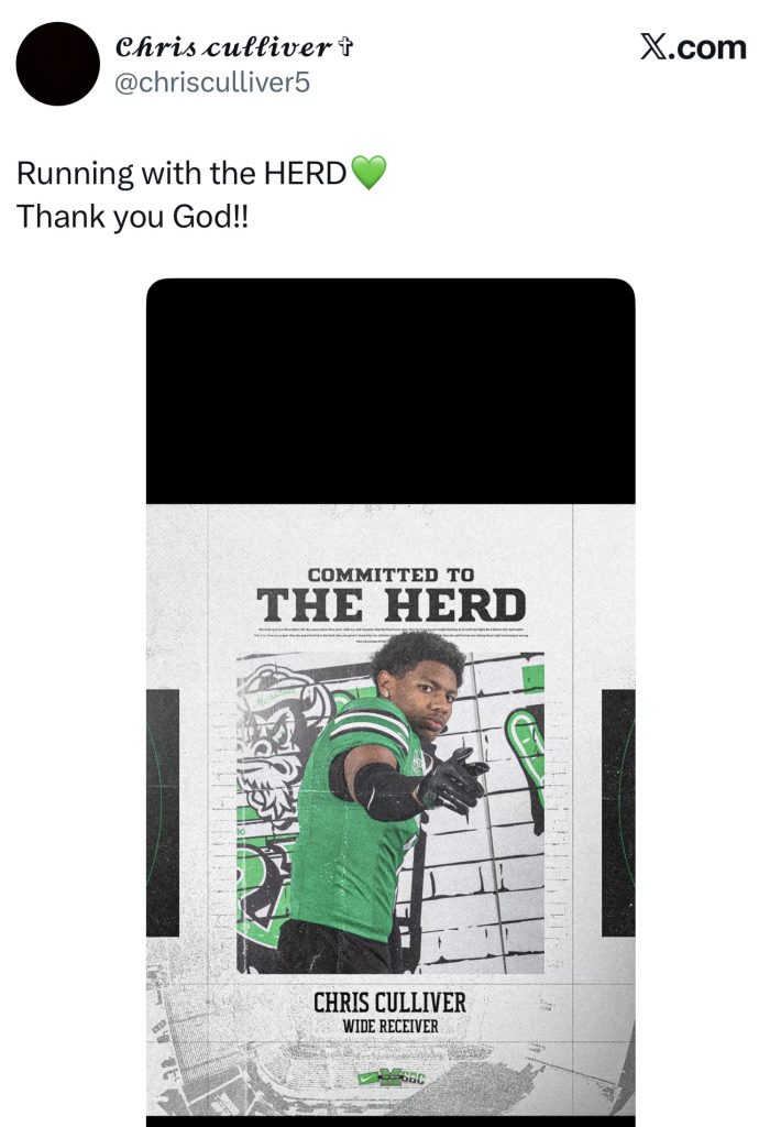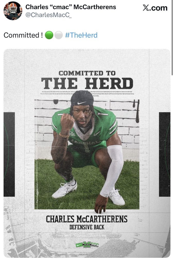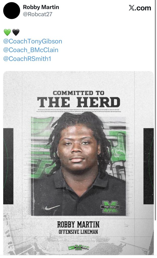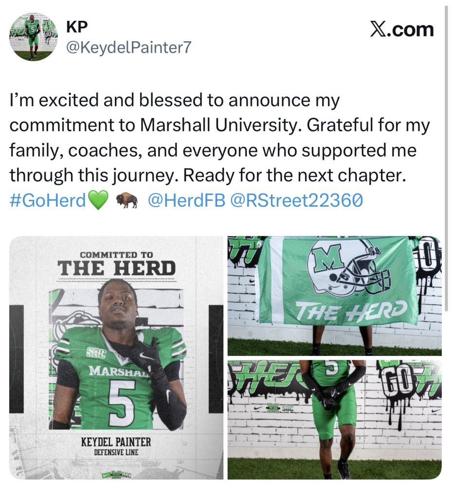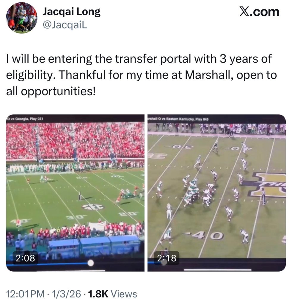 Long won the starting job against Georgia as a redshirt freshman this season but ended up with the third-most snaps among the three Quarterbacks at season’s end. He had been touted as “the future of The Herd” behind Center by the current coaching staff prior to the 2025 season. Long ended up going 6-18 with 31 yards and 0 TDs through the air and 38 yards on 15 carries and 1 TD on the ground. He has three years of eligibility remaining. His 1/3/2026 announcement on Twitter is below. Committed to Kentucky on 1/11/2026.