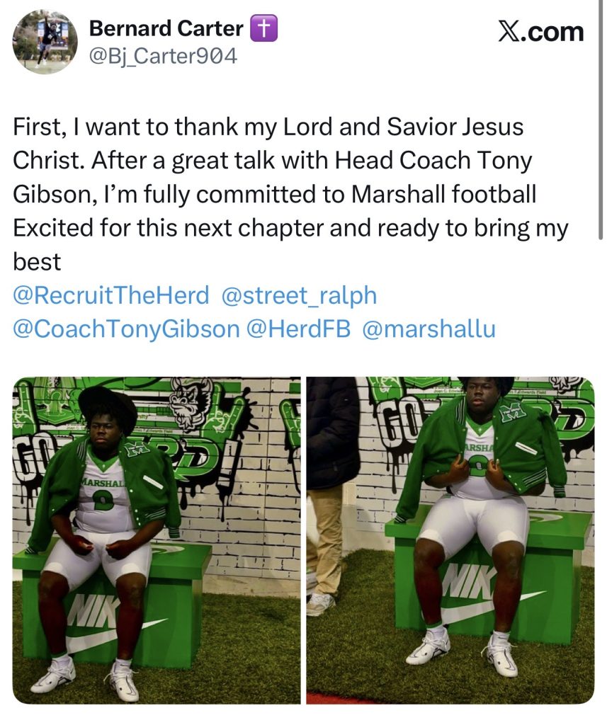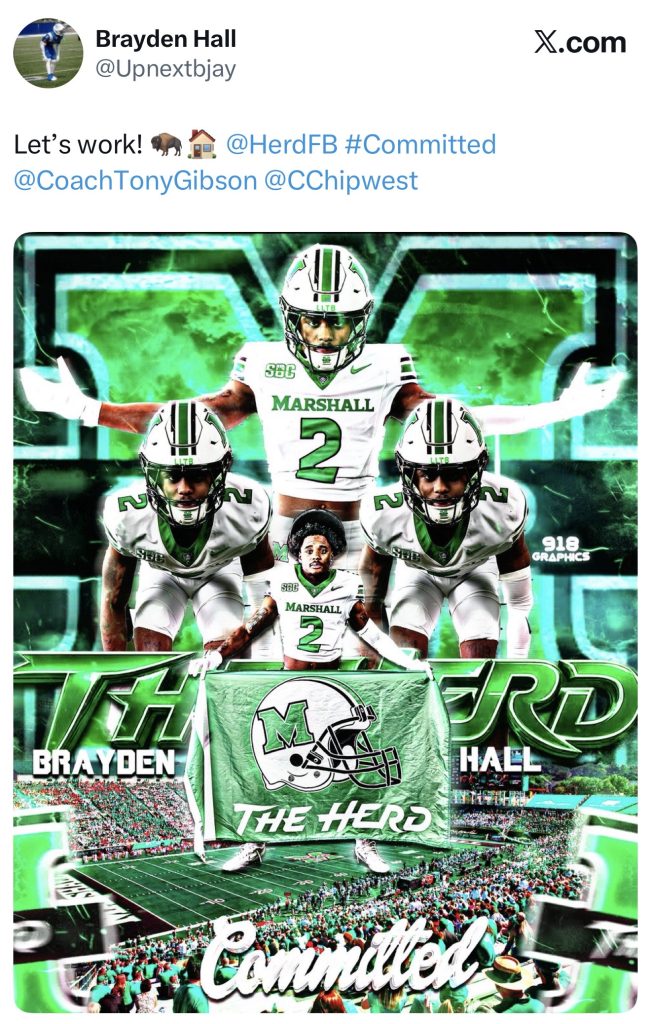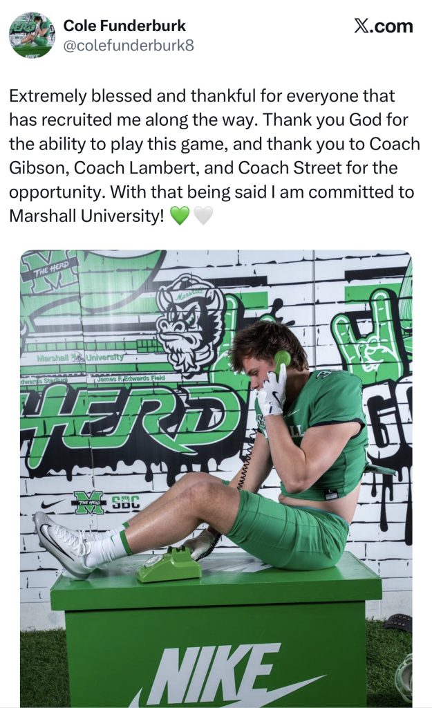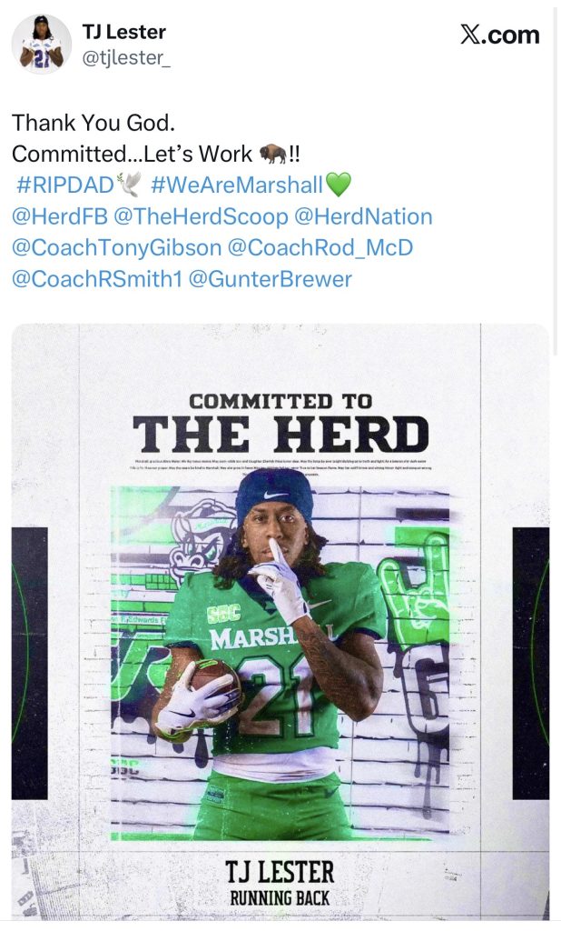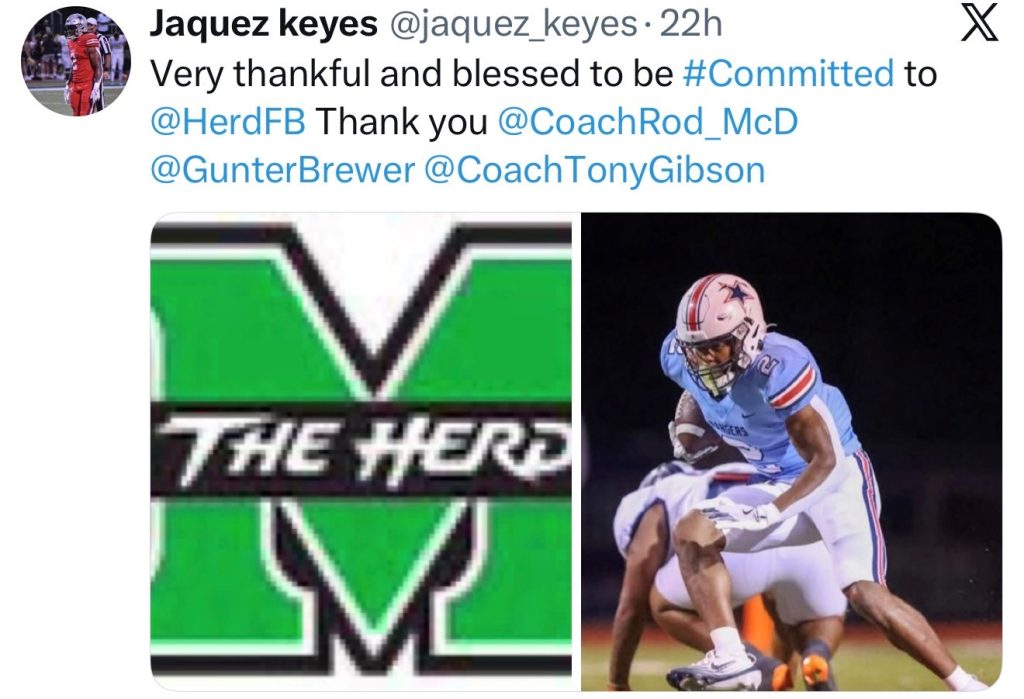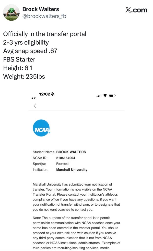 Long won the starting job against Georgia as a redshirt freshman this season but ended up with the third-most snaps among the three Quarterbacks at season’s end. He had been touted as “the future of The Herd” behind Center by the current coaching staff prior to the 2025 season. Long ended up going 6-18 with 31 yards and 0 TDs through the air and 38 yards on 15 carries and 1 TD on the ground. He has three years of eligibility remaining. His 1/3/2026 announcement on Twitter is below. Committed to Kentucky on 1/11/2026.